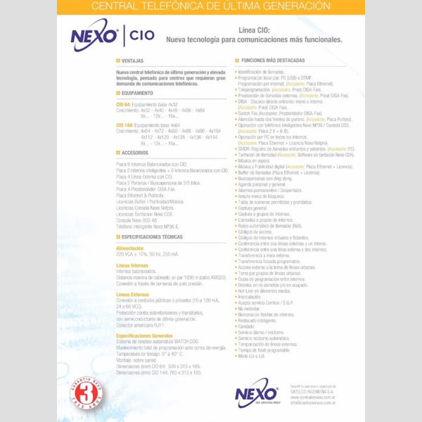 Es la solución óptima para las comunicaciones de empresas, hoteles, clínicas, clubes, countries, entes públicos, etc., donde se requiere un número elevado de comunicaciones simultáneas y amplias prestaciones.